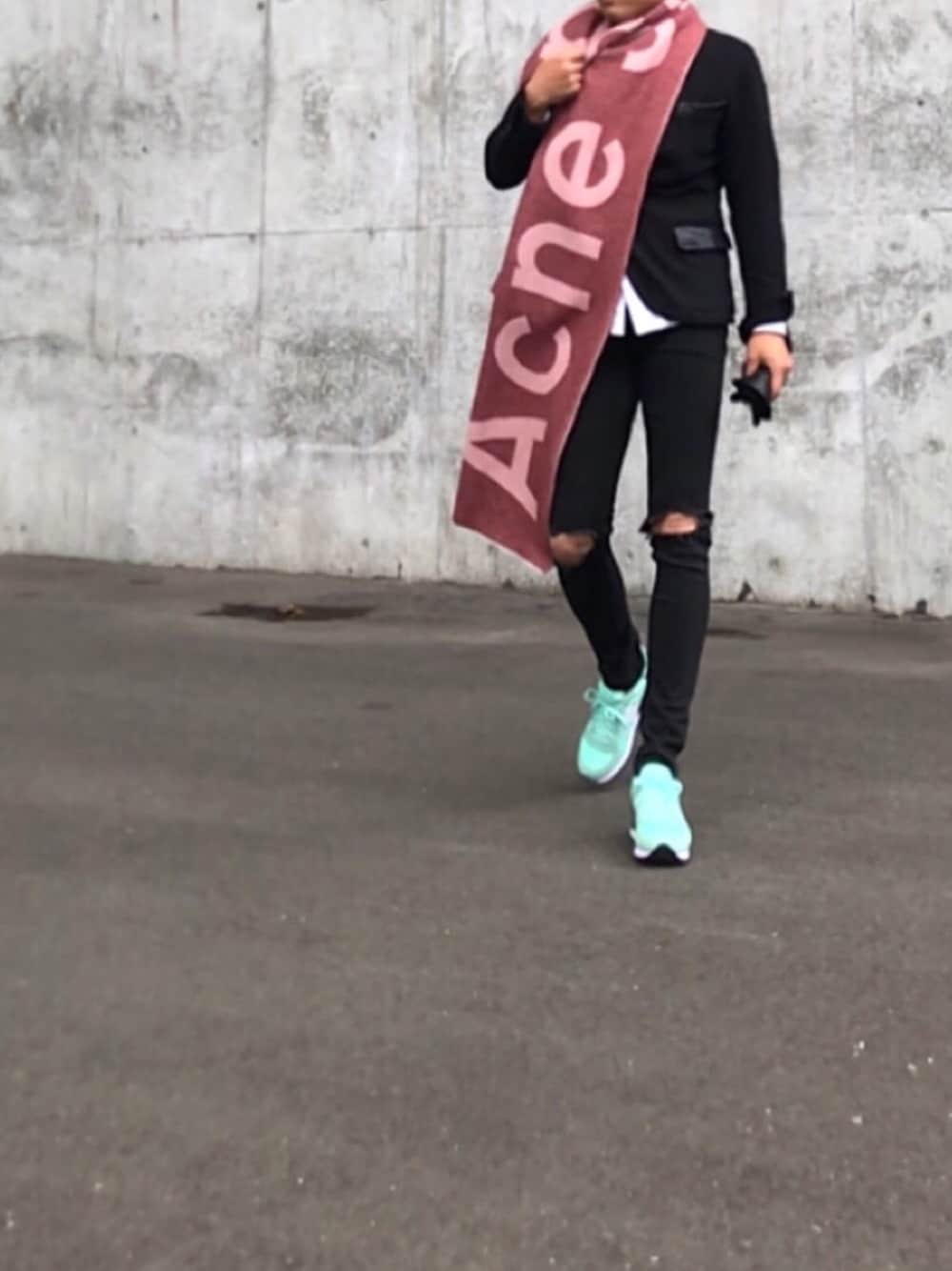 ミントグリーン👟とアクネのストール🧣がポイントのカジュアルコーデ✨