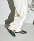 丸っとしたボリューム感が特徴のバルーンパンツ。 ボリューム感あるレイヤードも旬なスタイルに。 足もとは、スクエアトゥ×ローヒールで甘くなりすぎないミュールパンプス。 ハンサム顔のフラットタイプで、いろんなパンツスタイルに重宝しそう。