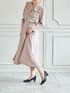フリルで目線を上に!足長効果の高い上品ワンピースコーデ♡ 足元はコーデの邪魔をしないブラックパンプスで。 足幅が細めの方におすすめなすっきりデザイン♡