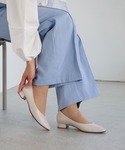 オフィスコーデの足元は無難な黒じゃなく、少し気分の上がるアイボリーをチョイス◎ センターシームで縦ラインが強調されるので、低めのヒールでもスタイルアップできます♡