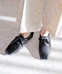 クロコ柄のレースアップシューズ。 スクエアトゥでトレンド感があります。 ラフなコーデに合わせても👌 ジャケットスタイルで、とことんきっちりさせても👌