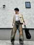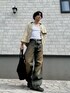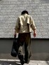 トレンドの立体裁断デニム、ショート丈トップスを使った秋色コーデです。 Aラインをしっかり出すようにアイテムを組んでみました。 色味は秋を意識したアースカラーです。
