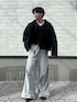 グレーのスウェットをベースにしたコーデ。 ラフになりすぎないように、 ブラックで全体をまとめて少しモード寄りに。 ベルトやシルバーアクセ、革靴で締めを入れて、 スウェットでも外に出れるバランスにしています。 インナーに白を挟んで、上下が分かれすぎないように。