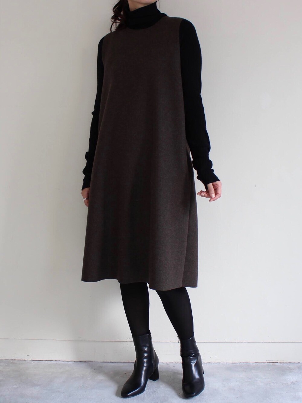 MODEROBE.OFFICIALのワンピース「ウールノースリーブワンピース」を使ったコーディネート