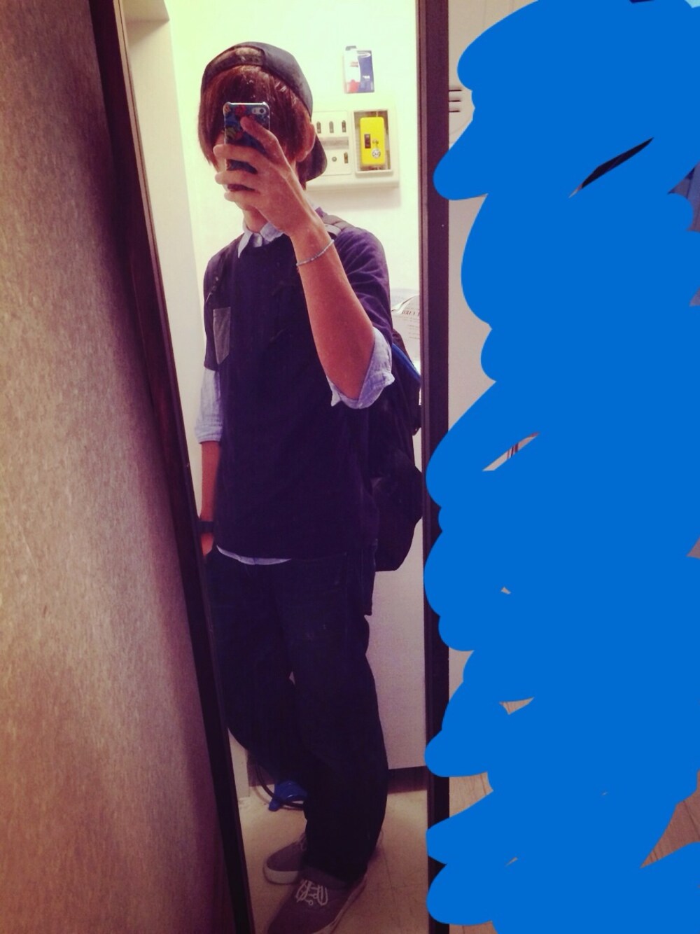 やんちゃ目ですね。 全身ネイビー系でそろえましたぁ。 最近キャップばっかりだなぁ…髪伸びてきて手抜きしてます(^ω^)笑