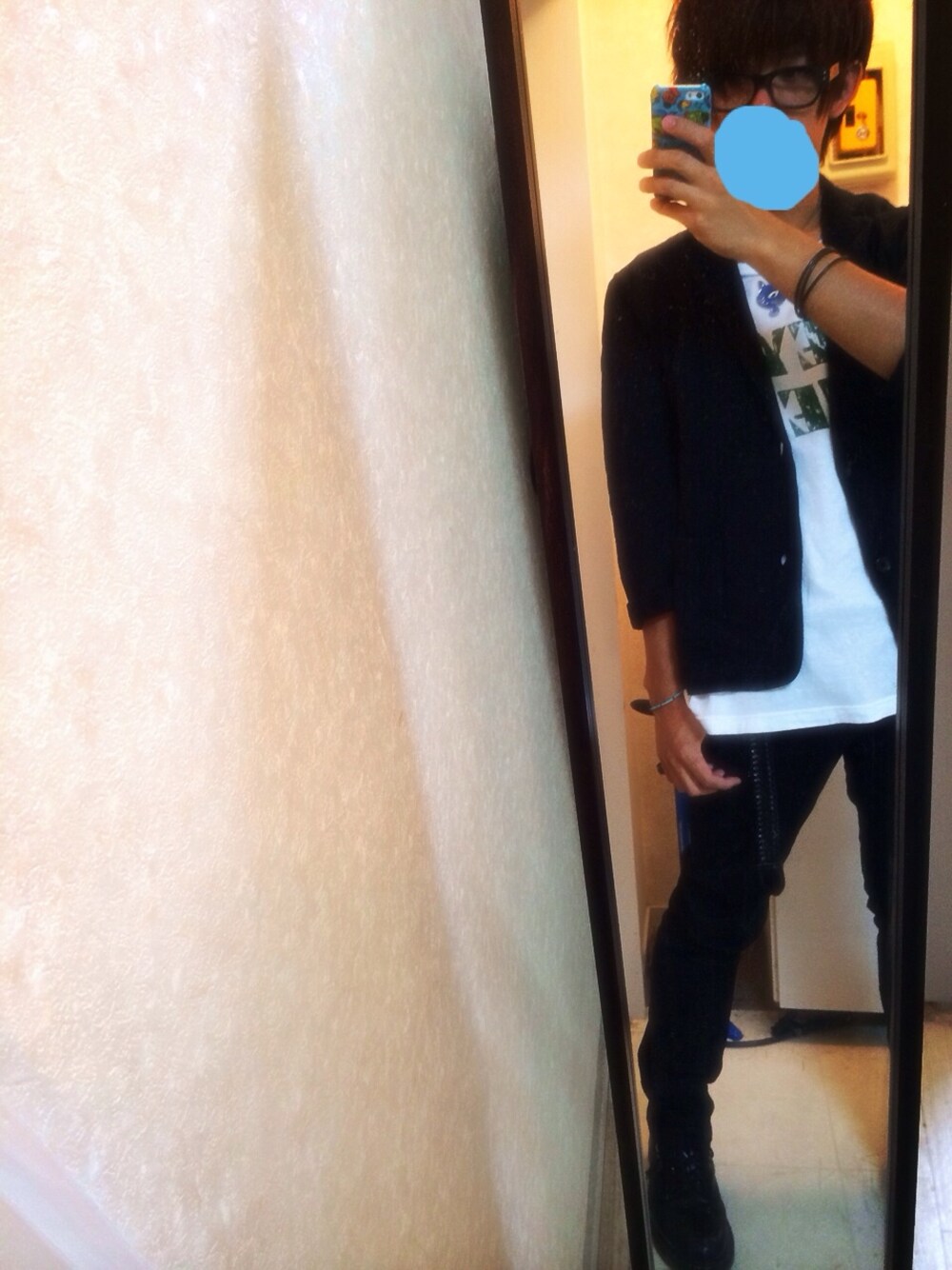 真面目ぶりたくてモノトーンコーデですぅ。 ジャケットじゃまだ思いかなぁと思ってテーラーカーデ。 メガネは度が入ってるガチメガネですよーう。