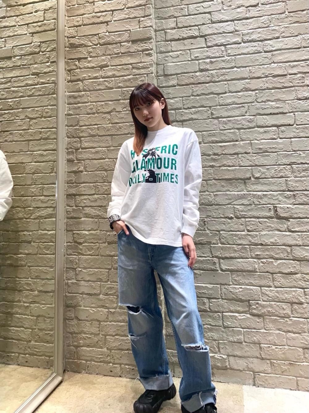 moe(HYSTERIC GLAMOURアミュプラザ博多店)のデニムパンツ「RESIZE加工 デニムストレートパンツ」を使ったコーディネート