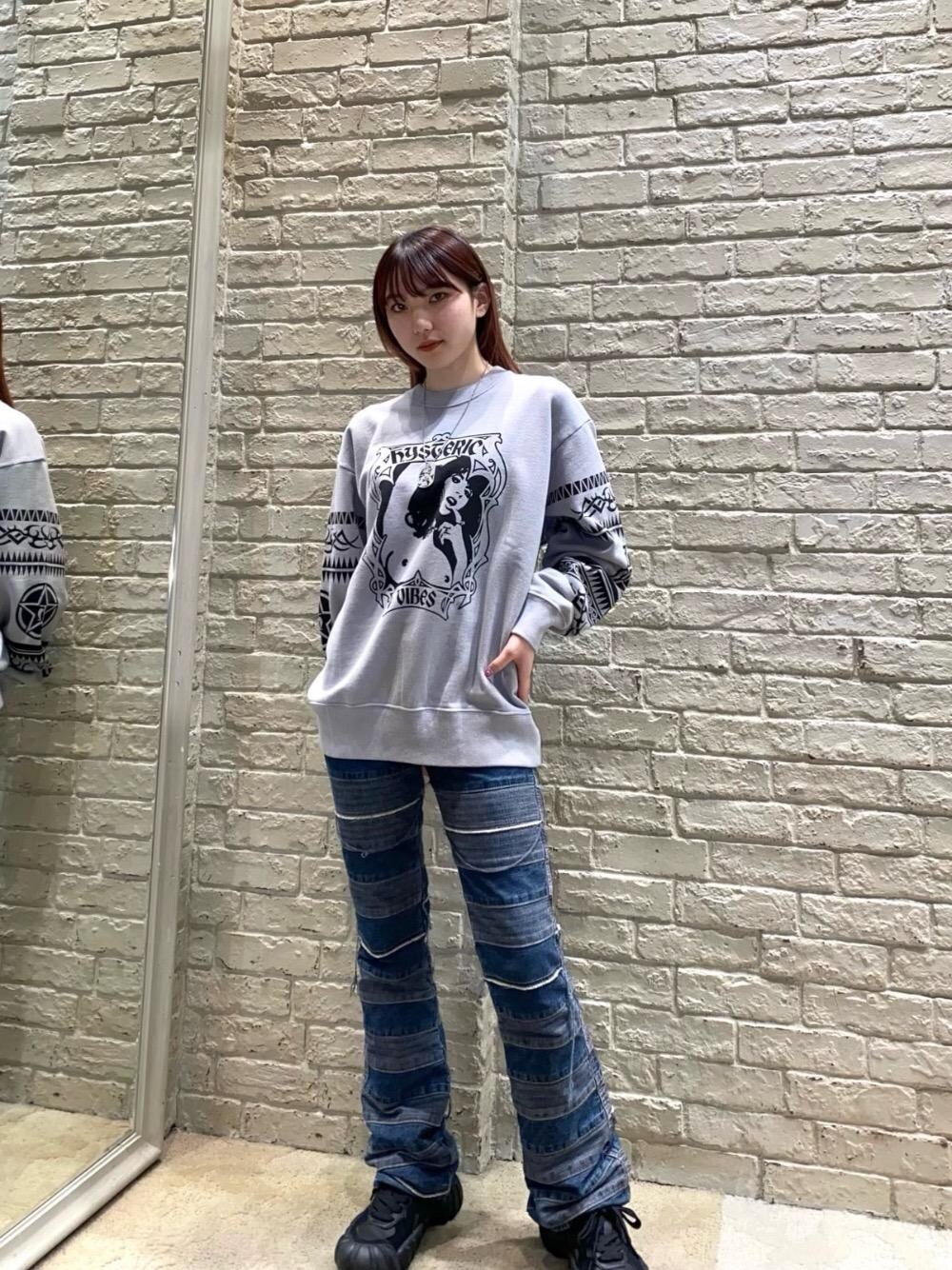 moe(HYSTERIC GLAMOURアミュプラザ博多店)のデニムパンツ「スクラッチフレアデニムパンツ」を使ったコーディネート