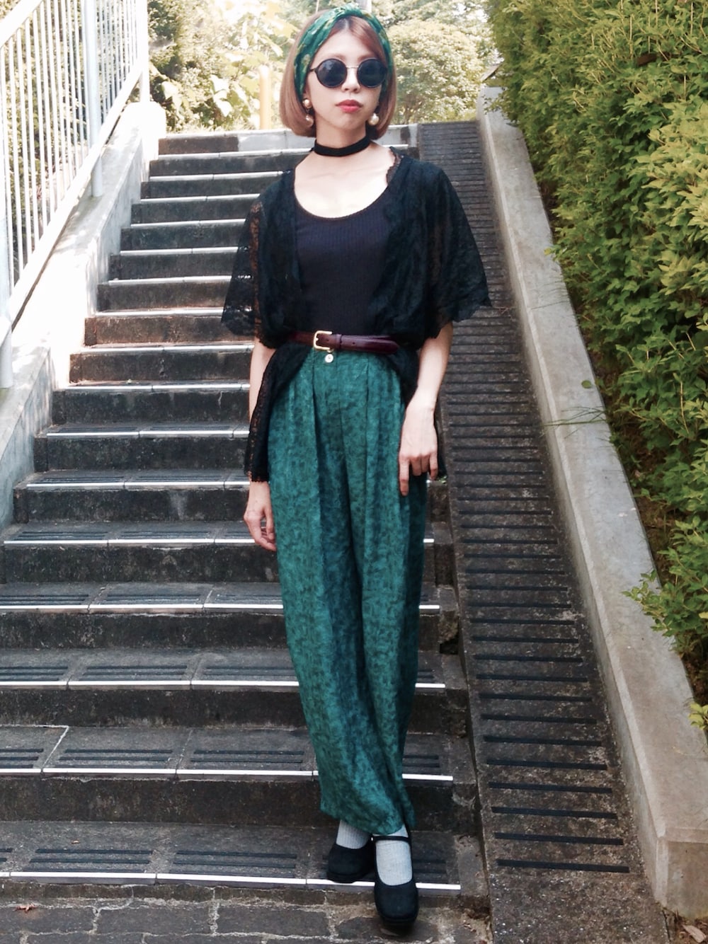 ribbon.vintage(smithandyou) Tshirt.GU gown.vintage pants.vintage shoes.used belt.AmericanApparel eyewear.forever21 Instagram→@moe0613