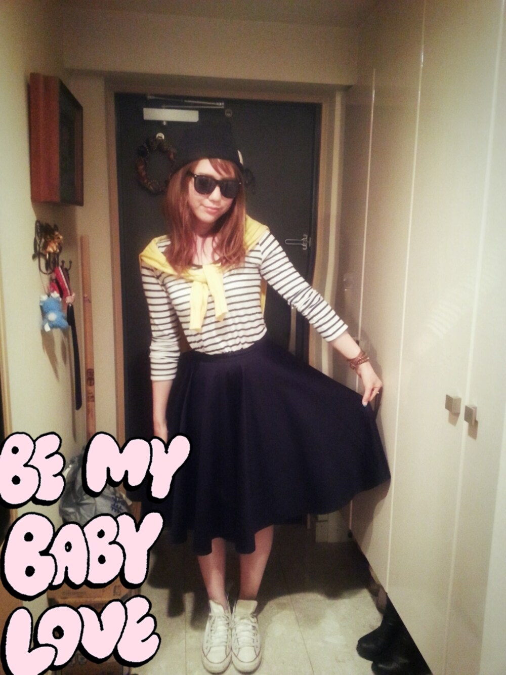 サーキュラースカート×サングラス..❁ てか ボーダー着回しすぎw