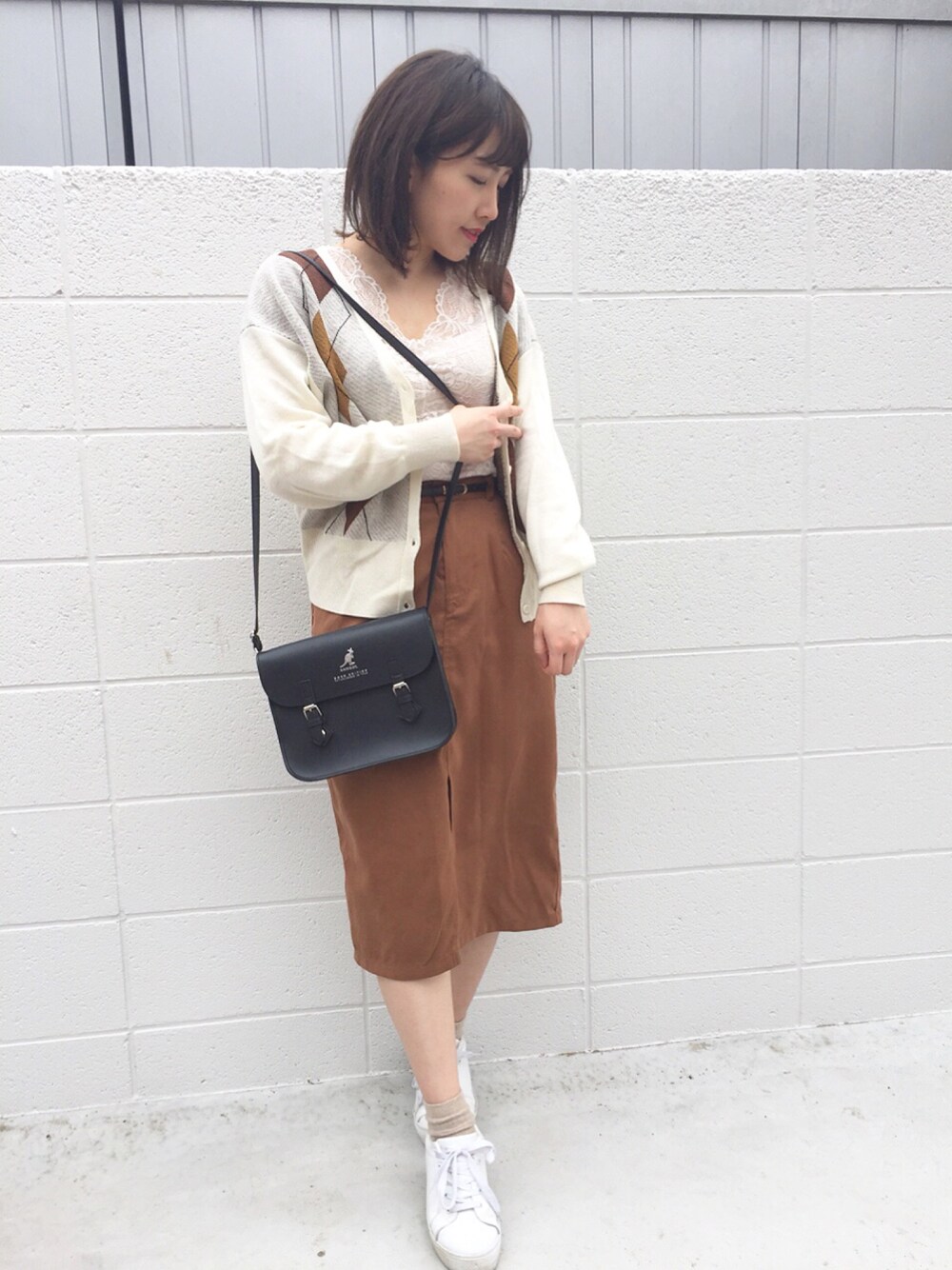 アーガイル柄の お気に入りカーディガン ♡ ブラウンと迷ったけど ブラウン系持ちすぎてるからホワイト ♡ CHICOのレーストップスは 万能すぎて手放せない💭 カンゴールのショルダーバッグは 厚みがなくてあんまりものが入らないけど その辺いくときに便利 ♫ ( ˙༥˙ )