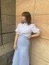 骨格ストレート/ブルベ夏 TOPS 袖にギャザーが入っていてふわっとしてるデザインです! 丈が短いのでハイウェストじゃないと着にくいかもしれないです。 私が着て腰骨上くらいの丈感です。 Skirt ウエストはきゅっと細身だがゴムで伸びやすいので履きやすいです! マーメイドの切りかえしが太ももの付け根あたりなのだかなり履きやすいです。 スリットもさり気ないので足が見えずらいです。