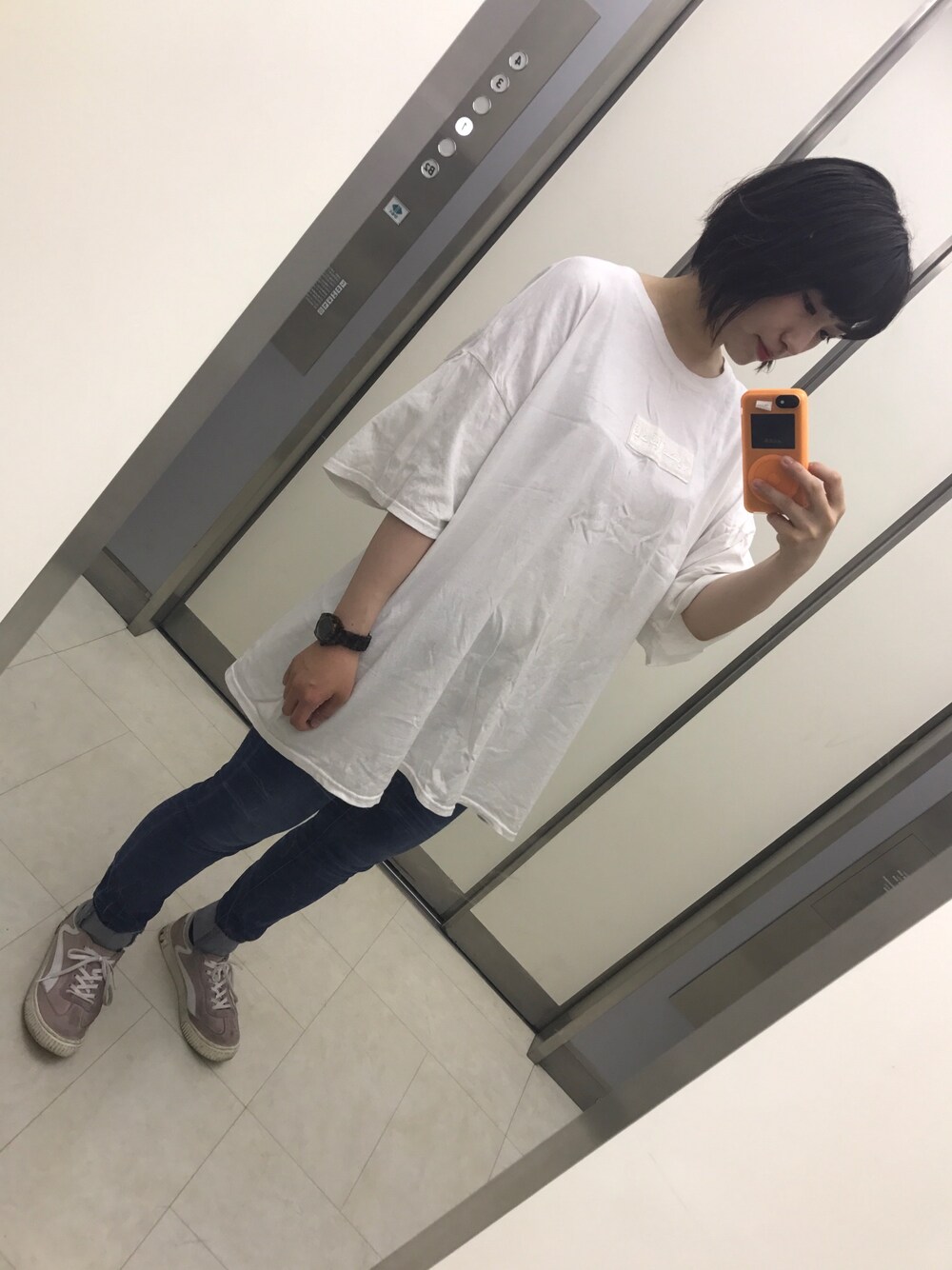 めちゃめちゃラフ笑 動きやすいのだいすき🚶🚶 kakavakaのでかTと UNIQLOのデニムスキニー 韓国で買ったスニーカー あたらしいnanananaのケース🤤🤤
