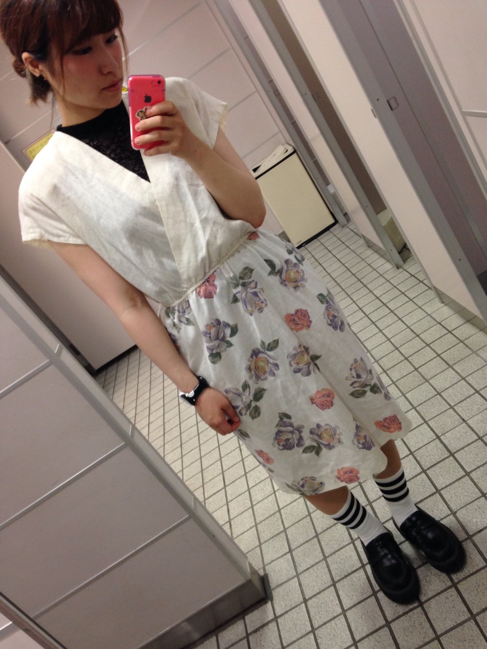 今日はワンピース一枚で🙋🌟 古着屋で一目惚れした一枚です😇 ちょっとタイトっぽくなってて、花柄もうるさくなくて着やすい一枚💕 中はjouetieのレースハイネックをあわせました〜〜 時計は牛柄マークバイマークジェイコブスの☺️💕💕 ガーリーなのも嫌なのでアメアパのラインソックスにしてみました、なんか違和感だけどまあいいや笑 明日は休みだ〜がんばろう🌻🌻