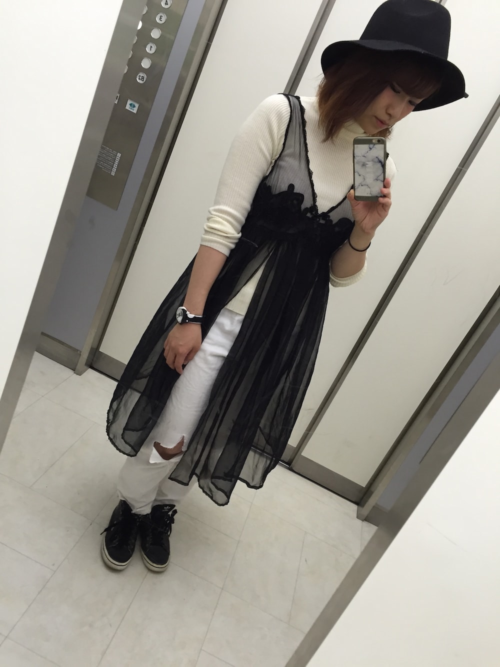 今日も黒白コーデ👶🏻👶🏻 久々にEMODAのハット、そしてトップスはUNIQLOのタートルネック🌱暑い。 他の色もほしいな💭 最近付けハイネックにはまっていて、全色買おうかという勢い。 上には古着のランジェリーを着ました〜! POUDOUDOUのパンツは昨日自分でダメージをつくりました笑 もっともっとぼろぼろにしたい、、、! スニーカーはレザー素材のadidas💥 今日は天気悪いけど仕事終わりのみだからがんばろ、、、、