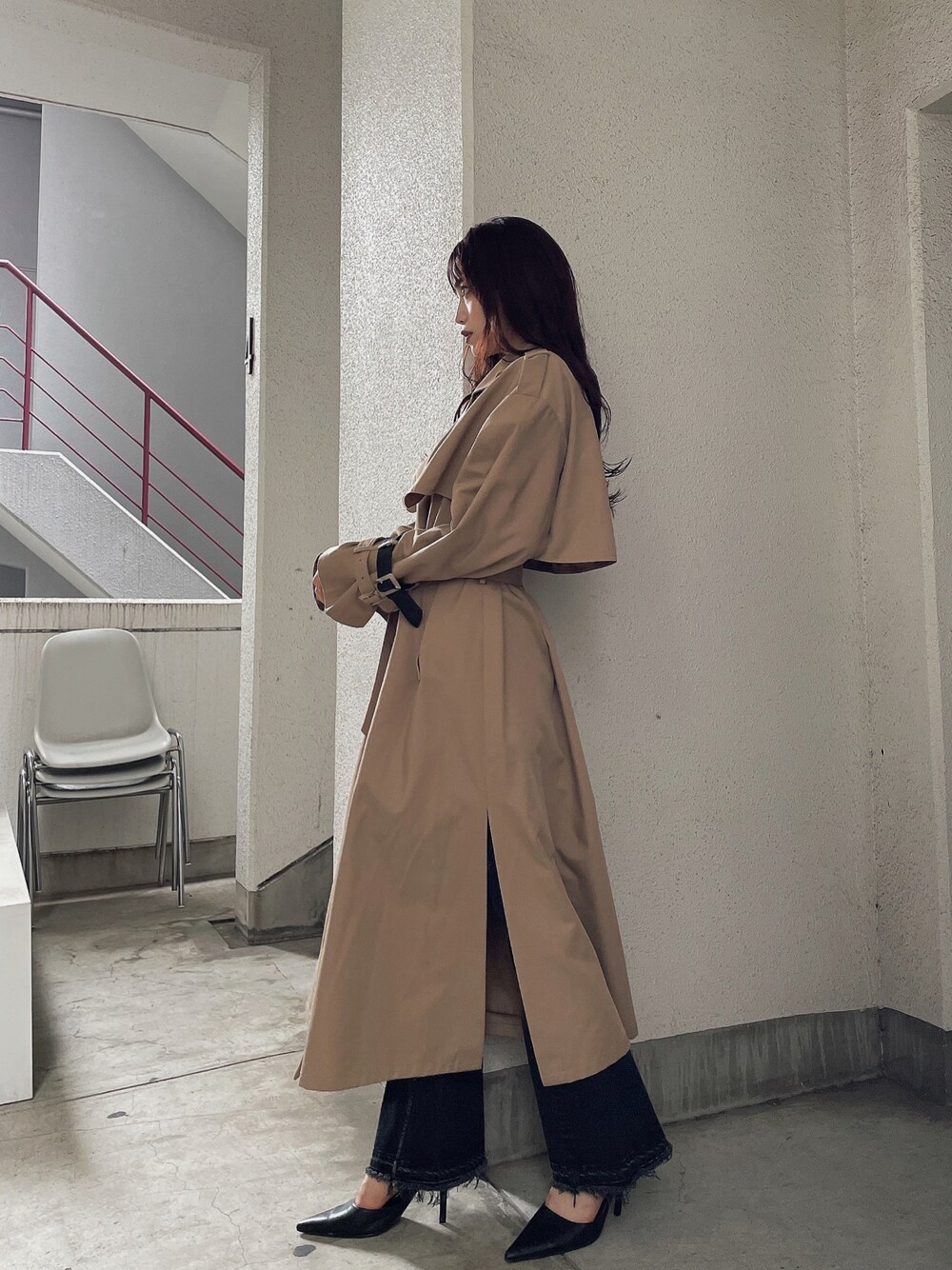 moeのトレンチコート「ライダースベストレイヤード トレンチコート」を使ったコーディネート