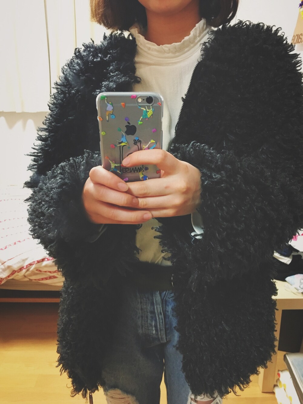 久々にモコモコ着たよ🐻 and peapleカフェめちゃオシャレだった💟 Kastaneの便利ベルト最高( ¨̮ ) さ、今日は高円寺で古着とキャップ探し😳💕
