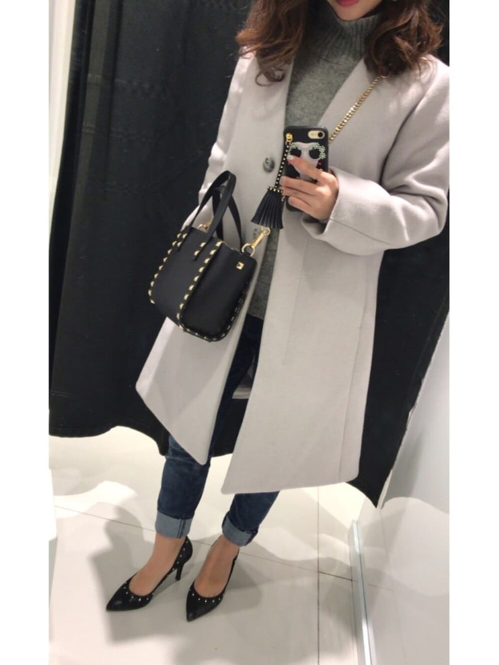 m.のその他アウター「PORTLAND Vネックフレアーコート◆」を使ったコーディネート