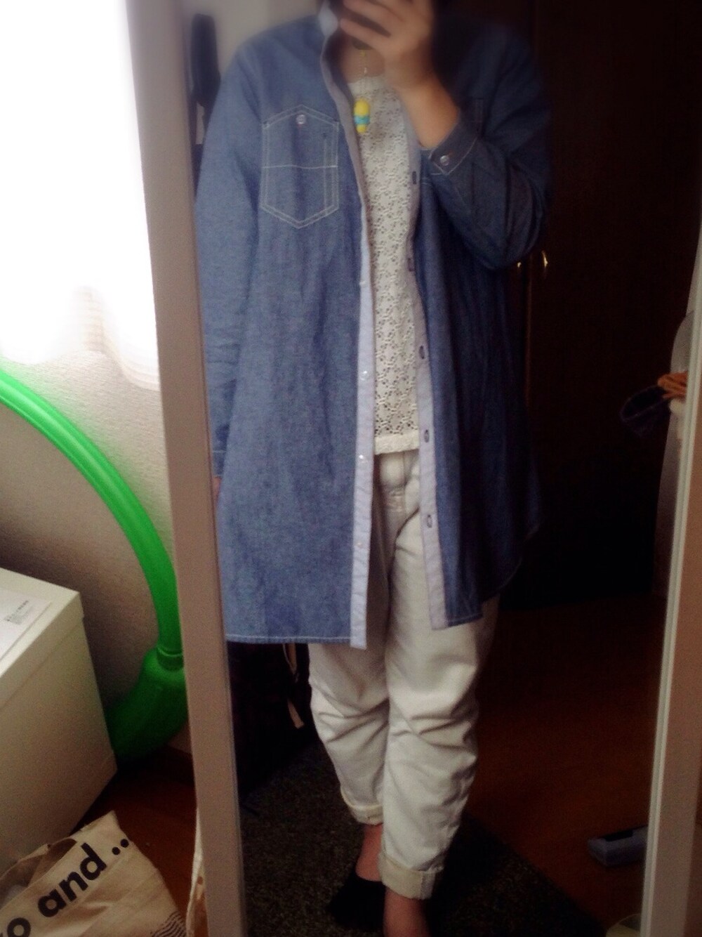 Shirt ... Niko and ... Pants ... しまむら Tops ... しまむら 白コーデ。 Nicoの襟なしシャツワンピがとっても優秀です(((o(*゚▽゚*)o)))