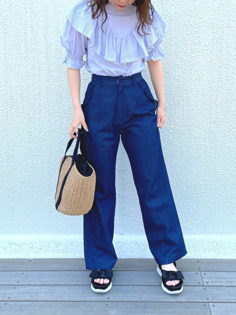 ラッフルブラウス☀️ 今年注目のデザインだから一枚持っておきたい♪ ストライプと膝丈のスカートと合わせていただくとお勤め着としても着用していただけます❤︎