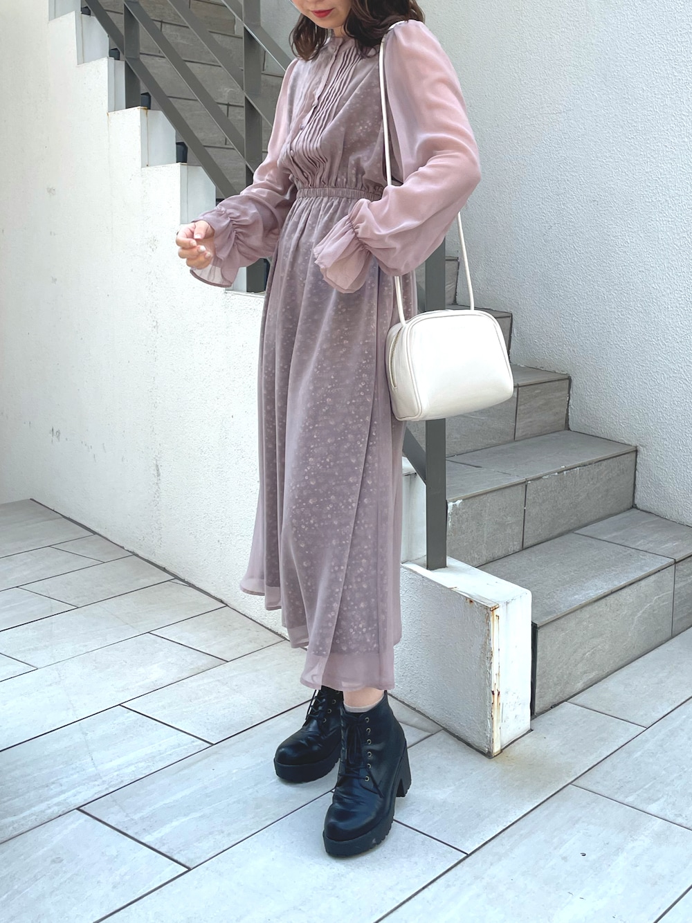 大人気の2枚重ねワンピースの長袖バージョンが登場♡ シアー感と透けて見えるお花柄でガーリーさ満載の1枚です☺︎ 長袖だけどシアー素材なので今からでも着れるので、ロングシーズン楽しめちゃいます💭