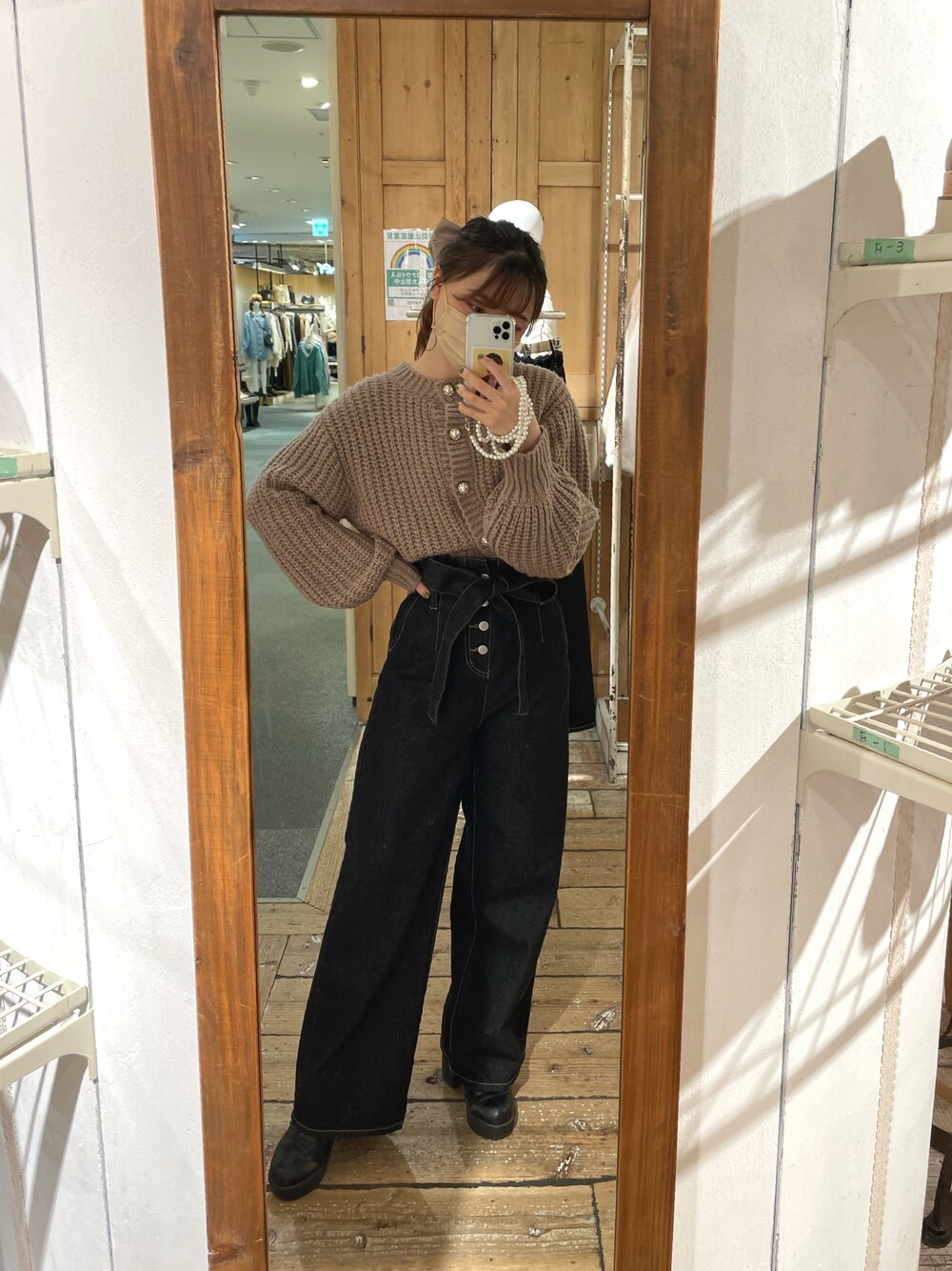 パールボタンでデニムと合わせてもカジュアルすぎないのがポイント! ボウタイブラウスや襟付きブラウスをレイヤードして着ても可愛い♡ Instagram→moeka_olive