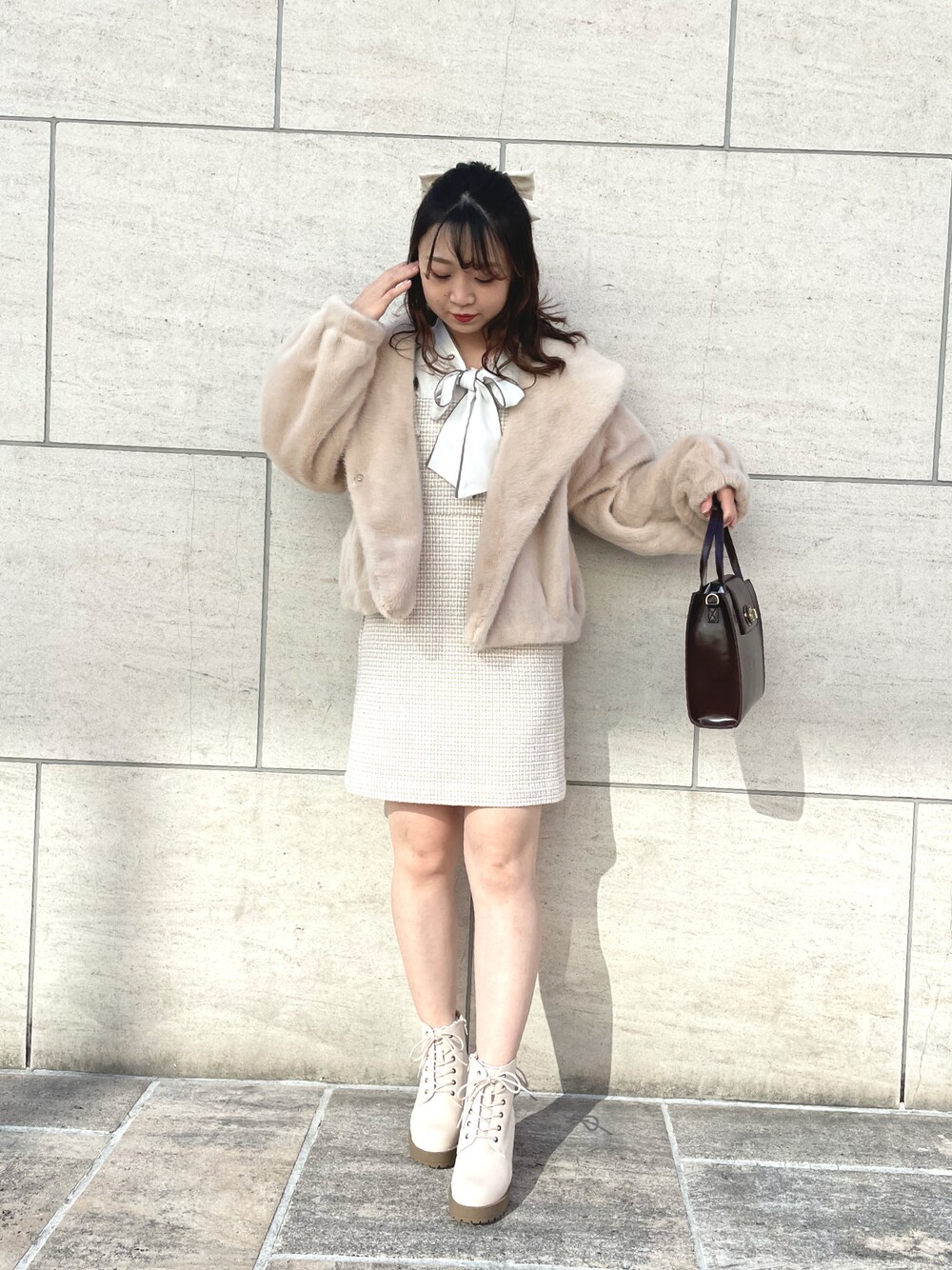 moeka(OLIVE des OLIVE 横浜ジョイナス)のブルゾン「見た目も可愛い。ふわもこファーブルゾン」を使ったコーディネート