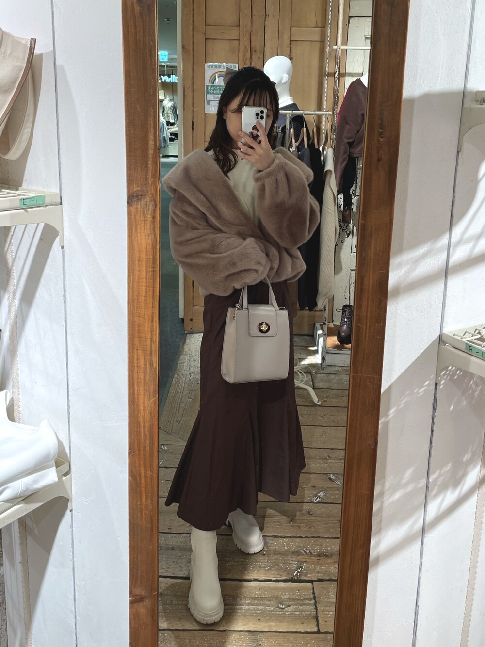 moeka(OLIVE des OLIVE 横浜ジョイナス)のショルダーバッグ「べっ甲ひねりスクエアバッグ」を使ったコーディネート