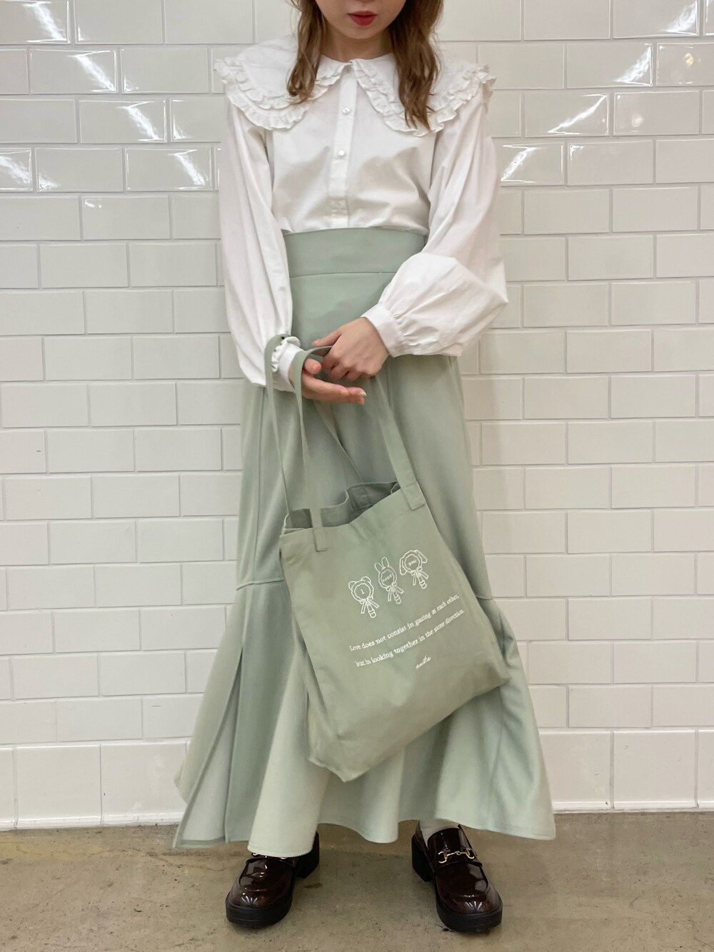 ミントグリーンコーデ🌿 マーメイドスカートはゆるっとしていてシルエットが出にくいので挑戦しやすいです🌟 Instagram→moeka_olive