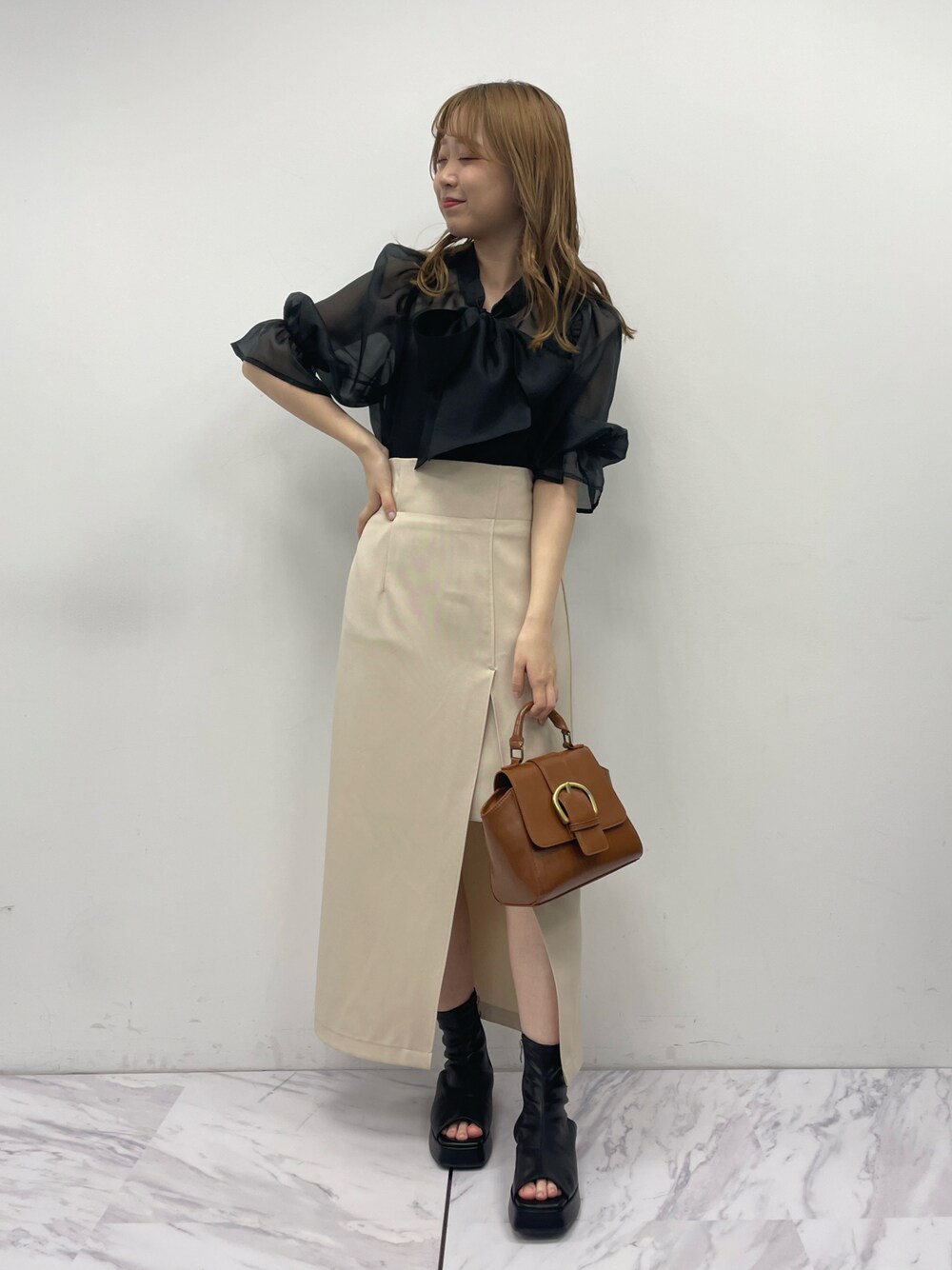 moeka(OLIVE des OLIVE 横浜ジョイナス)のシャツ/ブラウス「ダブルフロントシアーブラウス」を使ったコーディネート