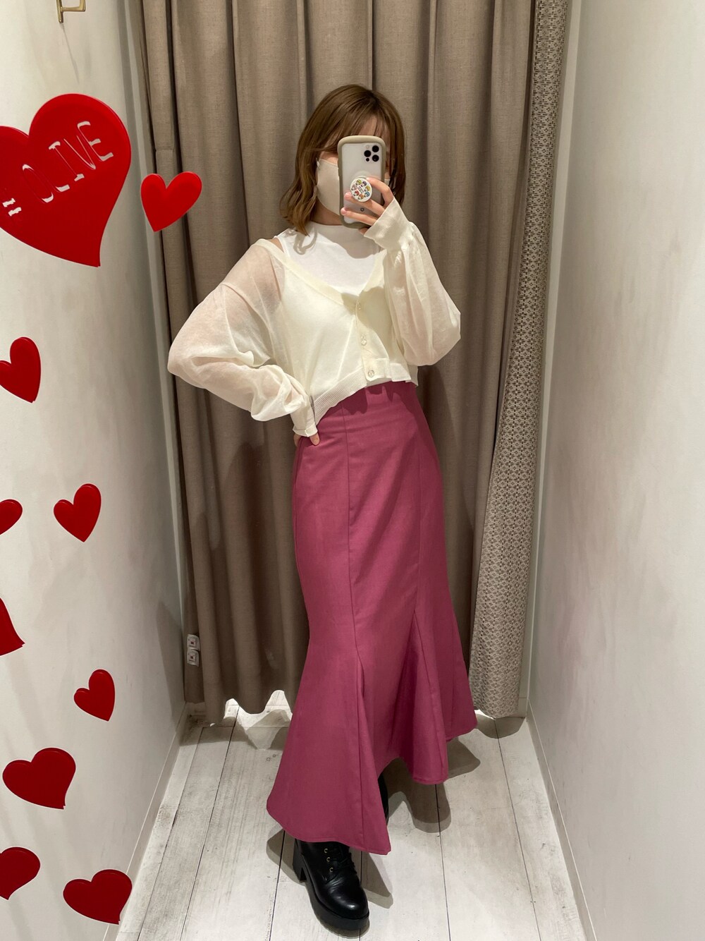 ラメ入りのカーディガンが可愛い♡ 一枚でレイヤードスタイルが叶うのがありがたい💭 マーメイドスカートもシルエット綺麗で骨格ウェーブでも挑戦しやすかったです🎀 Instagram→moeka_olive