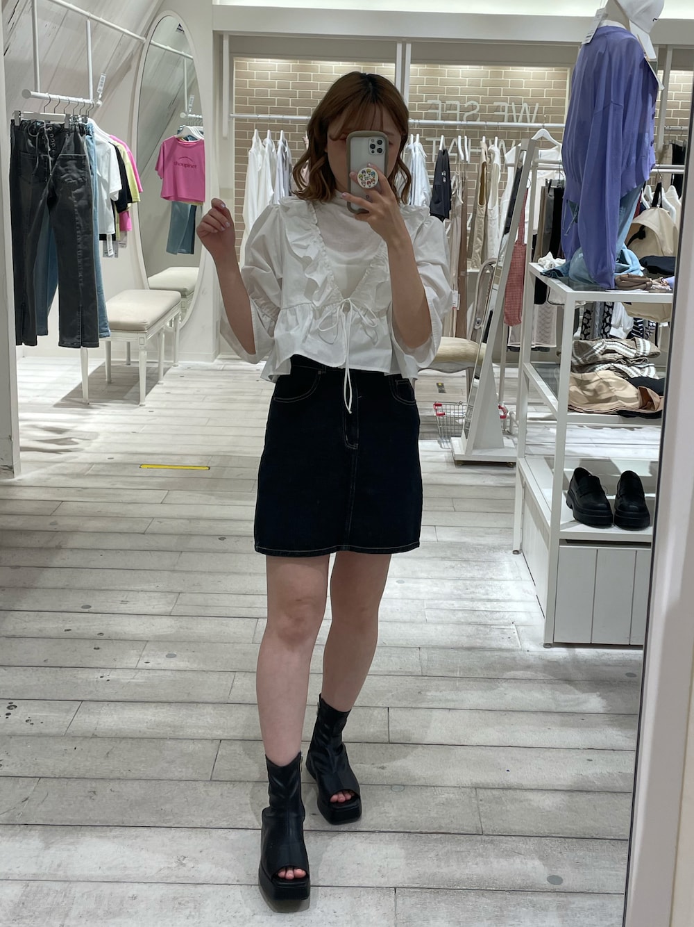 moeka(OLIVE des OLIVE 横浜ジョイナス)のブーツ「ストレッチブーツサンダル」を使ったコーディネート