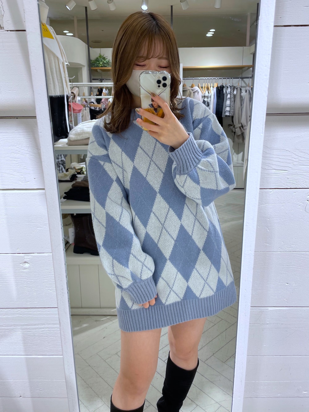 moeka(OLIVE des OLIVE 横浜ジョイナス)のニット/セーター「アーガイルチュニック」を使ったコーディネート