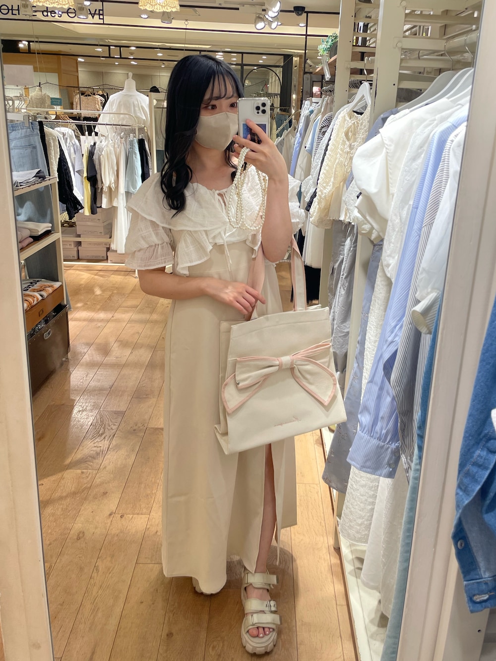 moeka(OLIVE des OLIVE 横浜ジョイナス)のトートバッグ「【新色追加】Aimerianejoieリボントートバッグ 1031120190」を使ったコーディネート