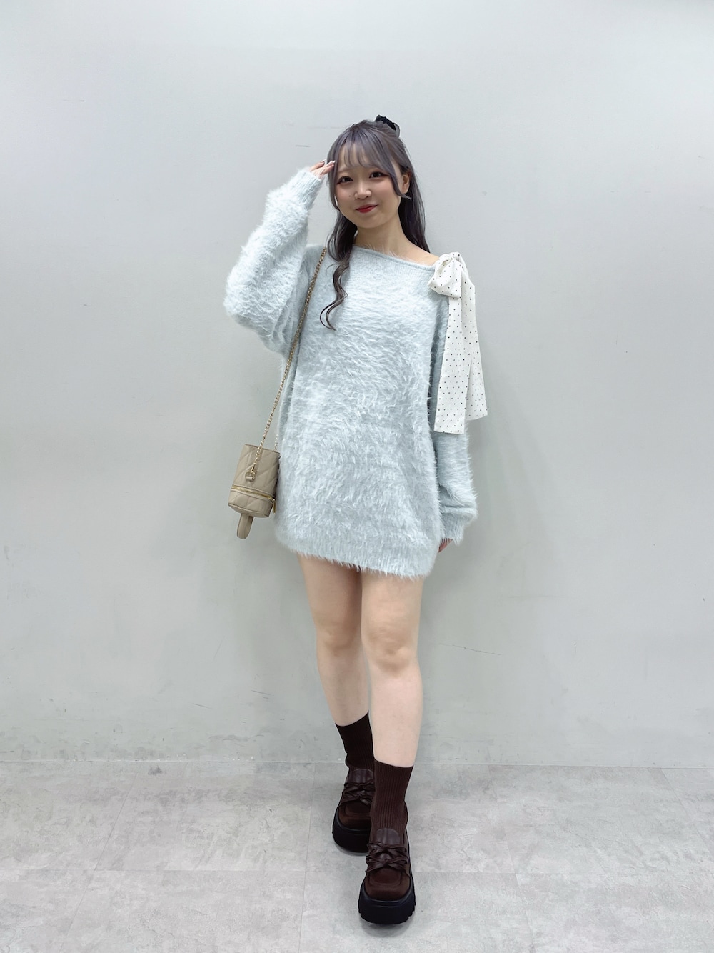 moeka(OLIVE des OLIVE 横浜ジョイナス)のブーツ「リブニットダブルリボンローファー」を使ったコーディネート