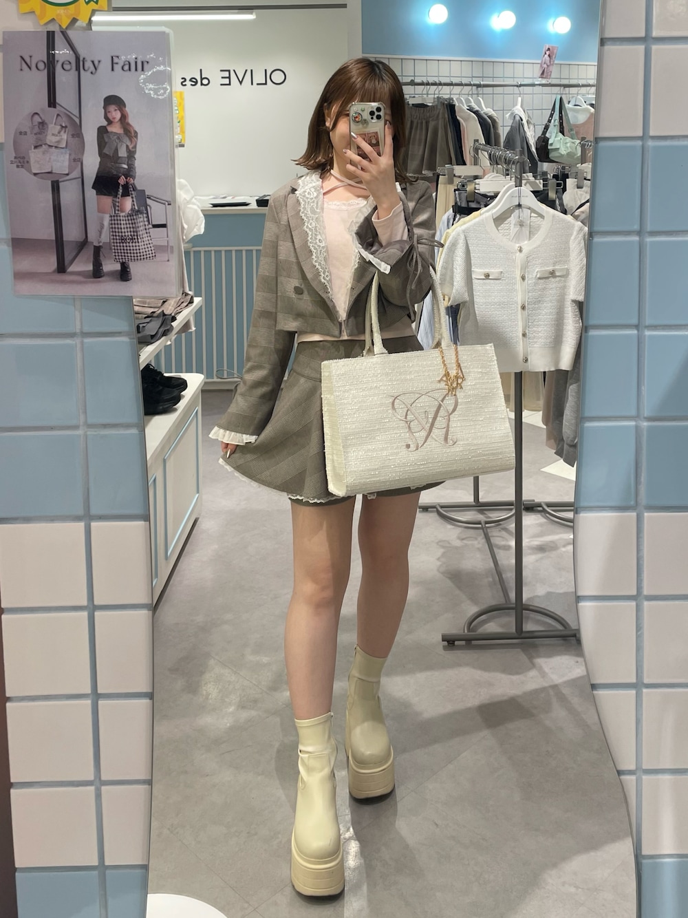 moeka(OLIVE des OLIVE 横浜ジョイナス)のトートバッグ「Aimerianejoieチャーム付きキャリーオントート」を使ったコーディネート
