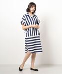 大胆なストライプ使いが目を惹く爽やかなスキッパーワンピース。ハリのある素材でワイドシルエットになっています。パンツ合わせはもちろん一枚で着ていただくのもおすすめです。