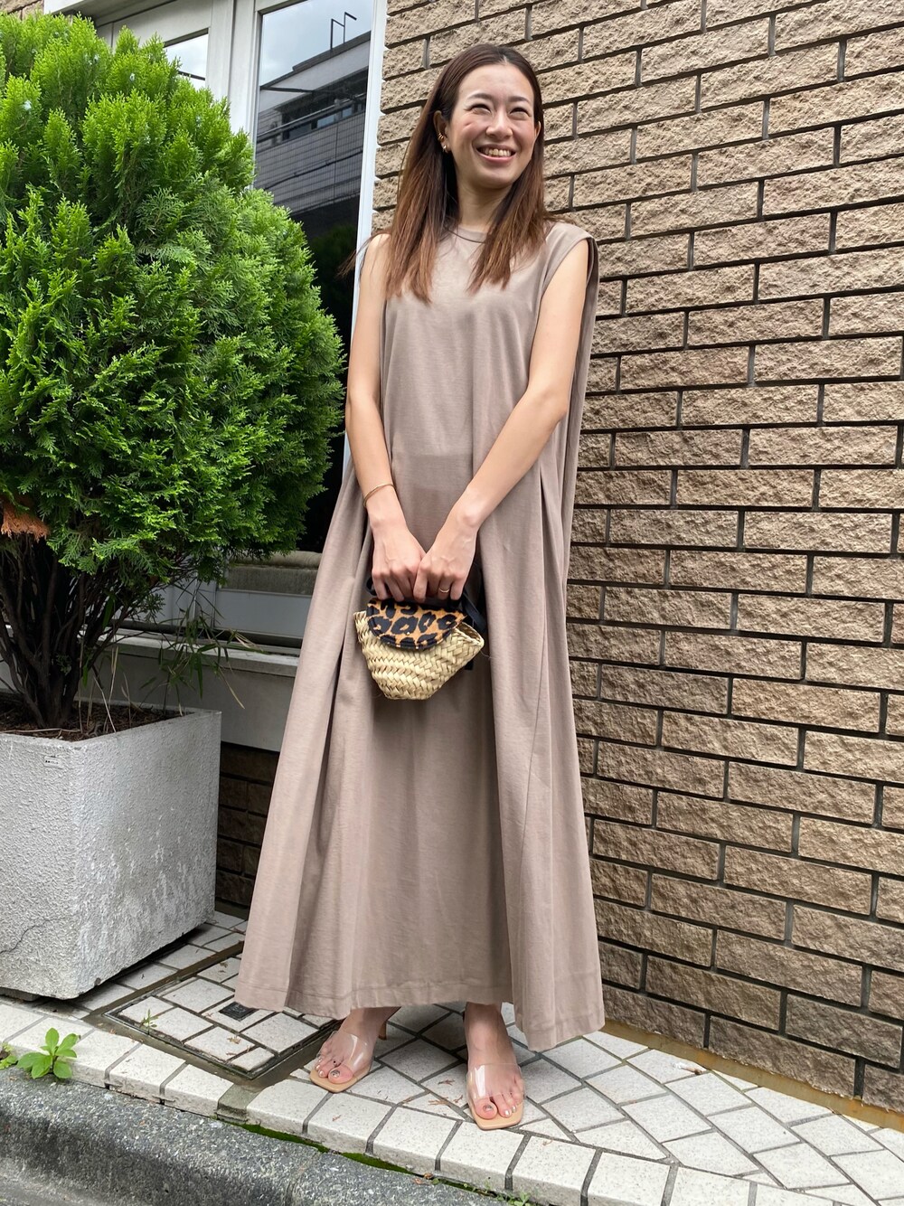 ハリのあるジャージ素材のロングワンピースは動きのあるAラインシルエットです。秋を意識したニュアンスカラーは秋まで長く着用頂けるのも魅力です。