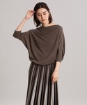 ドルマンスリーブニットはドレープラインが出るアシンメトリーのデザインになっていて、一枚でこなれ感を演出。チェック柄スカートはヘムラインで女性らしさをプラス。歩くたびにフロントのフリルが揺れて目を引きます。秋の始まりにおすすめのコーディネートです。