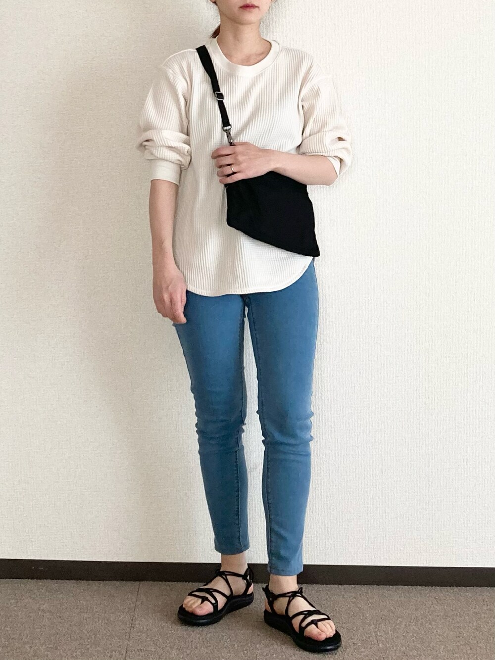 ロンTに明るめスキニーのシンプルコーデ🏝 サンダル買い替えました💡 細ストラップのTEVAサンダル軽くて可愛い👏