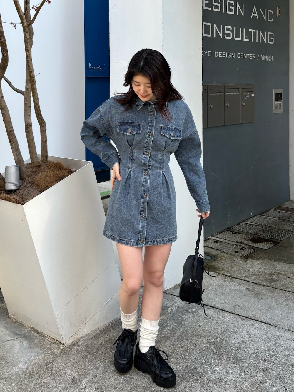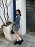 moemini32(Chico プレス)のワンピース「デニム切り替えミニワンピース」を使ったコーディネート