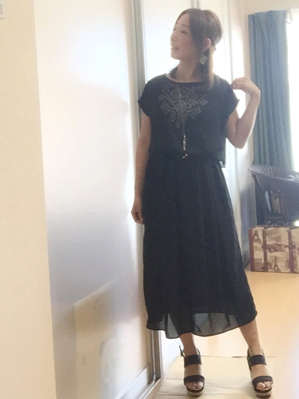 シフォン素材のワンピース♡ さらりと着れて肌触りもGOOD♪ カラーはブラックだけど夏に着ても透け感があるから重たくなくて良いかな(*´ω`*) 今日も暑くなりそー!!