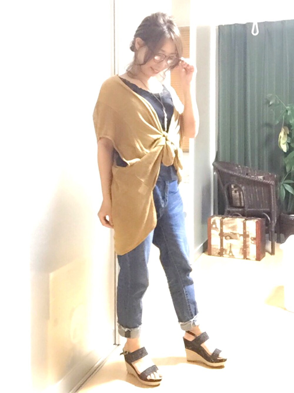 そういえば、UPし忘れてたいつかの休日コーデ。 studioCLIPで買った黄色のカーデは、本来のボタンを締める着方ではなく真ん中で結んで変形させて着用してます♪ ヘアは後毛たっぷりの編み込みアレンジにダテメガネで休日感を出してます♡(*´ω`*)