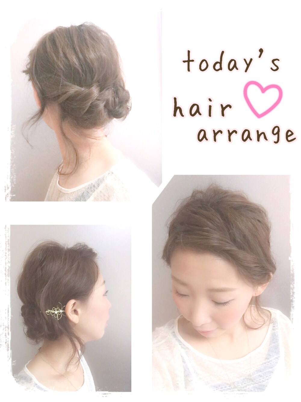 今日のヘアアレンジ♪ パパッと簡単✦ฺセルフセットです♪ 後ろはツイスト編みでサイドから逆側まで編んでそのまま毛先をくるくる丸めてピン留め! 前髪もネジネジして引っ張って崩してピン留め! おくれ毛たっぷり出してカチッとしすぎないゆるさを残してみました♡(^^)