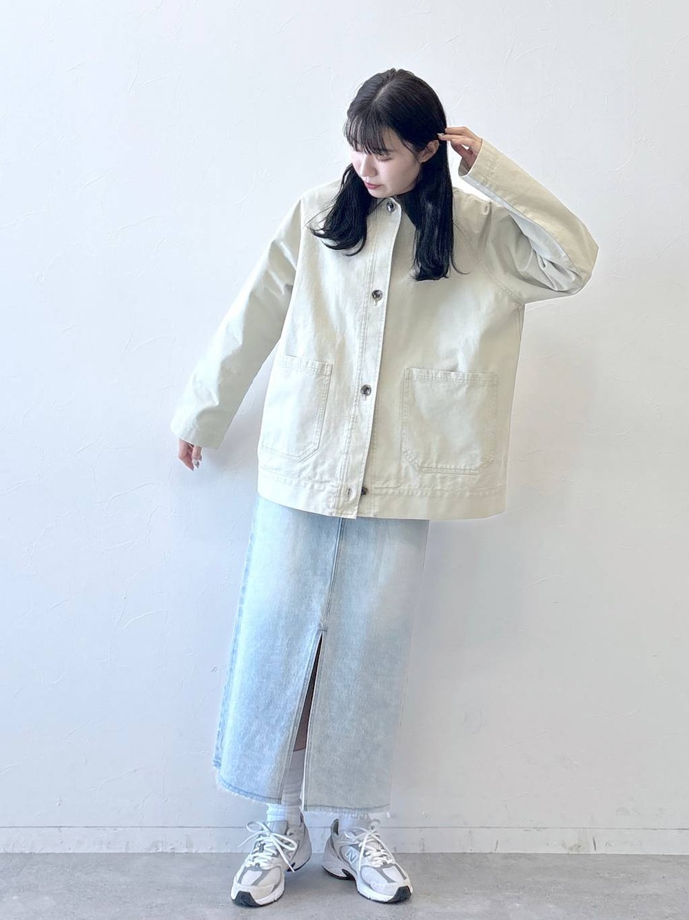 moemistyle(RAGEBLUE 本部)のデニムスカート「サイドスタッズ/スリットデニムロングスカート」を使ったコーディネート