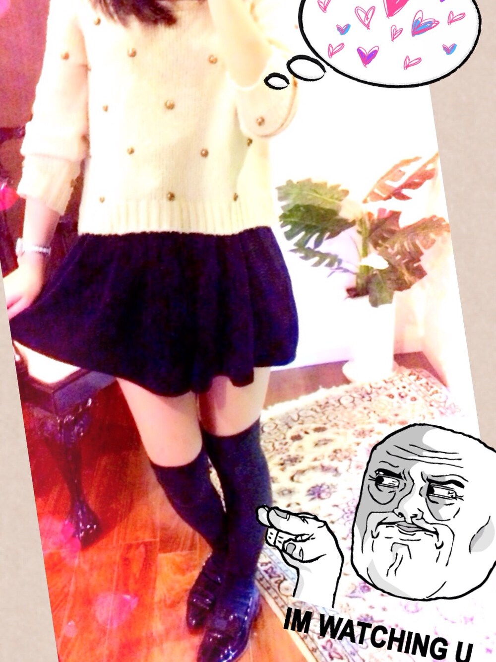 ニーハイソックスにリボン付きのローファーを合わせました この上はオレンジ色のポンチョコート♪