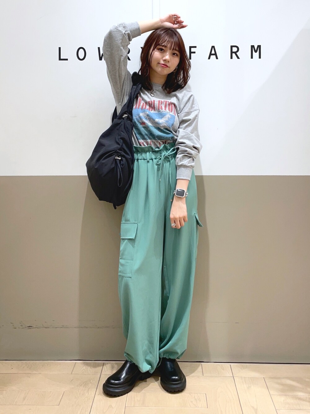 moe(LOWRYS FARM イオンモール福津)のTシャツ/カットソー「アソートロゴPTLS 973299」を使ったコーディネート