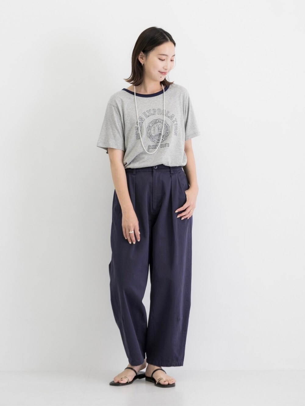 *トップス* プリントではなく、刺繍でロゴやモチーフを表現したグラフィックTシャツで、 麻混の柔らかなカットソー素材を使用しています。 1枚でも、カーディガンやジャンスカのインナーにも活躍します! シンプルになりがちな夏の装いのポイントにおすすめです。 *ボトム* 今年らしいコクーンシルエットのワイドパンツを、SonnyLabelらしいカジュアルな素材でおつくりしました。 お手持ちのベーシックなトップスに合わせるだけで今年らしいスタイリングになります◎ 裾をロールアップしてもかわいく決まるシルエットなので、 幅広い身長の方におすすめです!