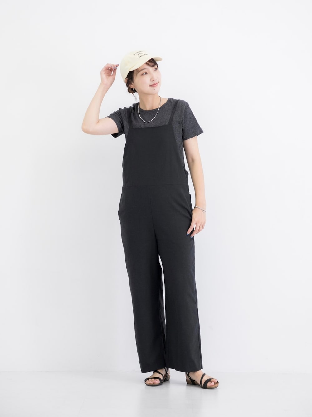 シンプルなデザインが大人っぽいサロペット* 華奢な肩紐が2本ずつ付いているデザインで、 リボンと金具でお好みの着丈でお召しいただけます◎ 夏でも涼しく着られそうなさらっとした素材です! インナーにはスラブベーシックTシャツを合わせました! スラブリブの表情のある素材で、1枚でもインナー使いにも重宝します。 SUMMER SALE開催中です。 この機会にぜひお試しください♩