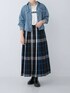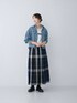 チェックプリーツイージースカートの予約がスタートしました! 今回は、オフ・ブラック・ブルーの大好きな配色のブラック系を履いてみました! ロゴTシャツとデニムシャツと合わせて、 少し秋らしさを意識しました♩